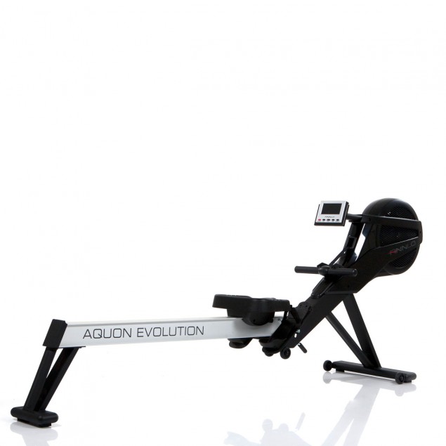 Der besonders ruhige Bewegungsfluss, der kugelgelagerte Sportsitz auf der stabilen 135 cm langen Aluminiumschiene und der Fussstützenabstand von gerade mal 9 cm sorgen beim Training für ein realitätsgetreues Ruder-Training im Trockenen. Die Sitzhöhe erinnert an professionelle Ruderboote und liegt bei 45 cm. Das extra lange Zugband von 182 cm des Aquon Evolution erlaubt Körpergrössen bis zu 2 Metern.