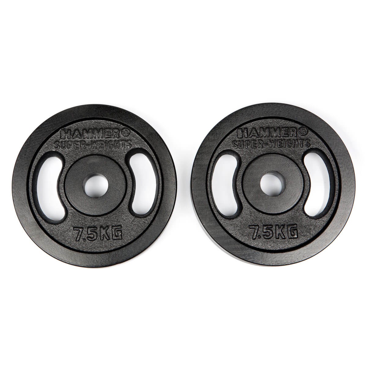 - 2x 7,5 kg – schwarz, Gewichtsscheiben mit Griff