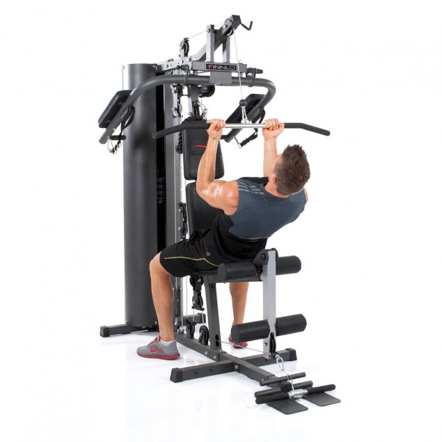 Die Autark 600-Kraftstation ist das kompakte Einsteiger-Gym von FINNLO und alles was ein Fitnesssportler braucht! Butterfly, Latissimuszug und Rudern sind bei der Autark 600-Kraftstation ebenso möglich wie diverse Seilzugvarianten, Crunches und Beinstrecken. Trizepsseil, Latissimus-Stange und Schlaufen für variable Griffhaltungen inklusive. Ein weiterer Vorteil der Schlaufen: durch muskuläre Vorspannung wird das Krafttraining noch effektiver. Auf kleinstem Raum kannst Du so Arme, Brust, Schultern und Rücken trainieren ohne das Haus verlassen zu müssen.