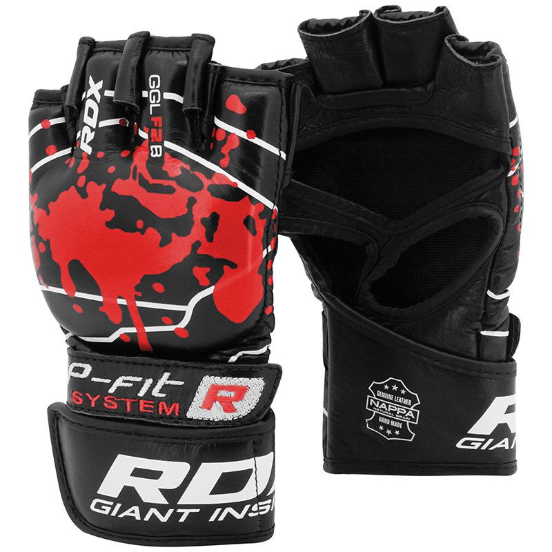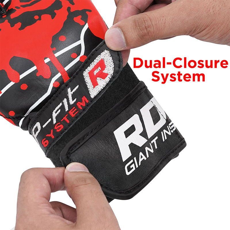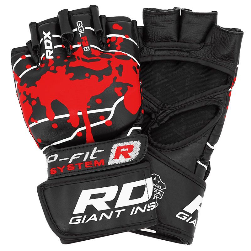 Amour your hands with RDX®’s full-grain leathered, triple layered ‚IMT‘ gel integrated padded MMA gloves! Aesthetically pleasing, yet intimidating in design. Its solid constitution and technologically sound interior are cleverly assembled to absorb the heaviest of impacts without damaging the knuckles, wrists or deforming the glove. P-Fit™ design provides snug-fit along with Dual cross-directional™ strap technology that enables adjustment from both sides of the wrist, comfortably securing wrists in place, avoiding wrist-slippage or wiggle while you throw heavy leather. Open palm design with curved anatomic grip assists with punching technique and wicks away sweat and moisture from the hands to keep gloves odour free and long-lasting.(SMALL & MEDIUM SIZES RECOMMENDED FOR UP TO 14 YEARS OF AGE)